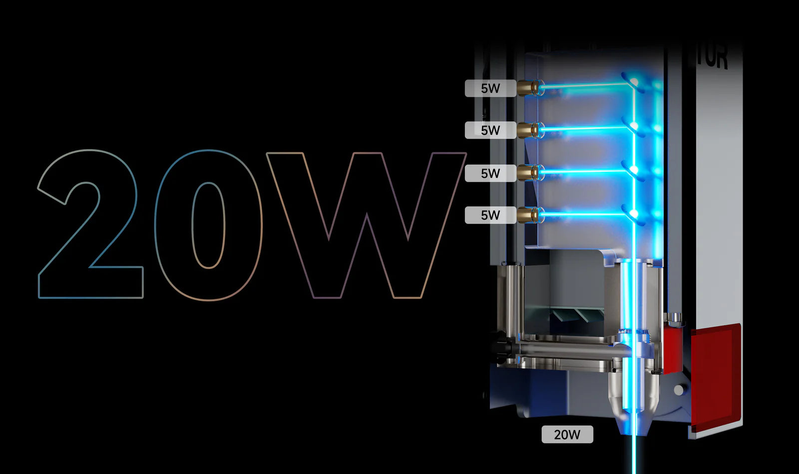 Combines 4 diode laser beams to compress a finer beam and powerful energy.